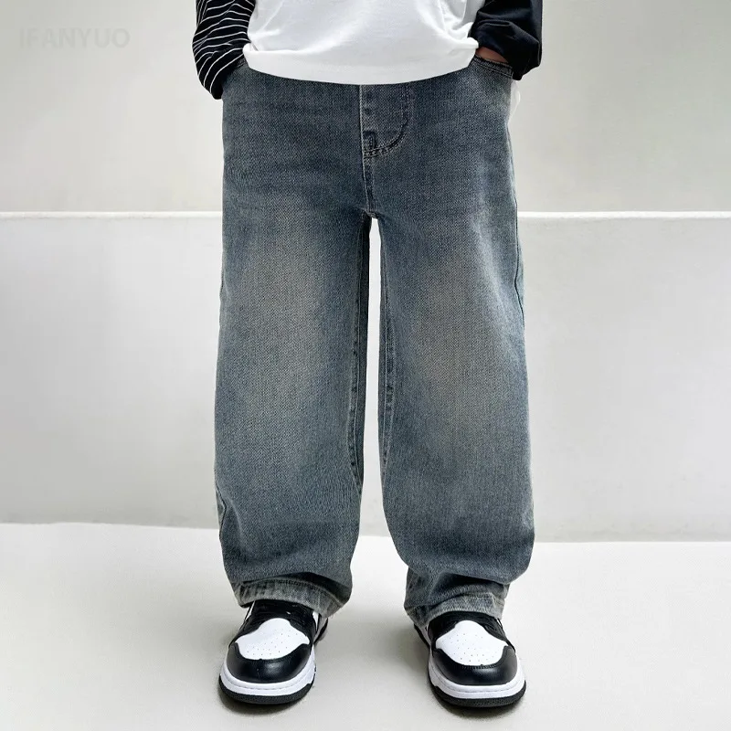 These boys’ wide-leg denim pants are perfect for spring adventures and everyday wear. Made from soft, breathable cotton, they provide comfort for active kids. The straight-leg design offers a modern, stylish look. Durable fabric ensures long-lasting wear through play and frequent washing. The pants are ideal for both casual outings and sports activities. Elastic waistbands provide a secure and flexible fit for growing children. Suitable for boys aged 4–12 years, making them a versatile wardrobe staple. Lightweight denim allows free movement while keeping kids comfortable. Classic styling pairs easily with T-shirts, sweatshirts, or hoodies. These 2025 fashion jeans are both practical and trendy for any young boy’s wardrobe.