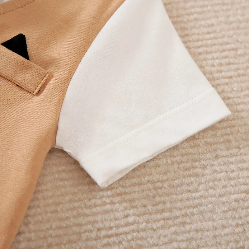 This gentleman-style baby bodysuit is perfect for newborns and infants during summer. Made from soft, breathable cotton, it keeps babies comfortable all day. The short-sleeved design allows for free movement while keeping them cool. Its formal, stylish look makes it perfect for special occasions and photos. Gentle on delicate skin, the fabric ensures all-day comfort. Snap closures make diaper changes quick and easy. Suitable for both boys and girls, offering a versatile unisex design. Lightweight and soft, it’s ideal for summer wear. Durable stitching keeps the bodysuit looking great through frequent washing. A practical and charming addition to any newborn wardrobe, perfect for gifting.